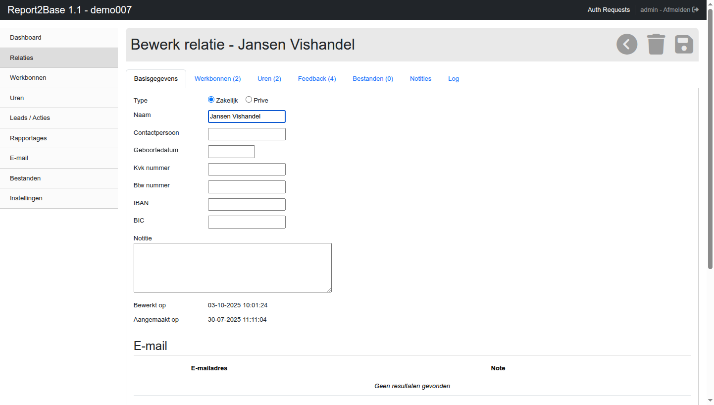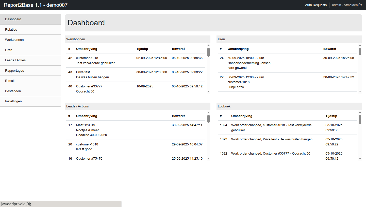 De beheer interface is gericht op desktop gebruik. Hiermee kunnen eenvoudig overzichten worden opgevraagd en rapportages worden gemaakt.