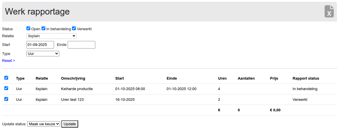 toegevoegd met omschrijving. Deze komen vervolgens terug in de Rapportage-module om wekelijks of