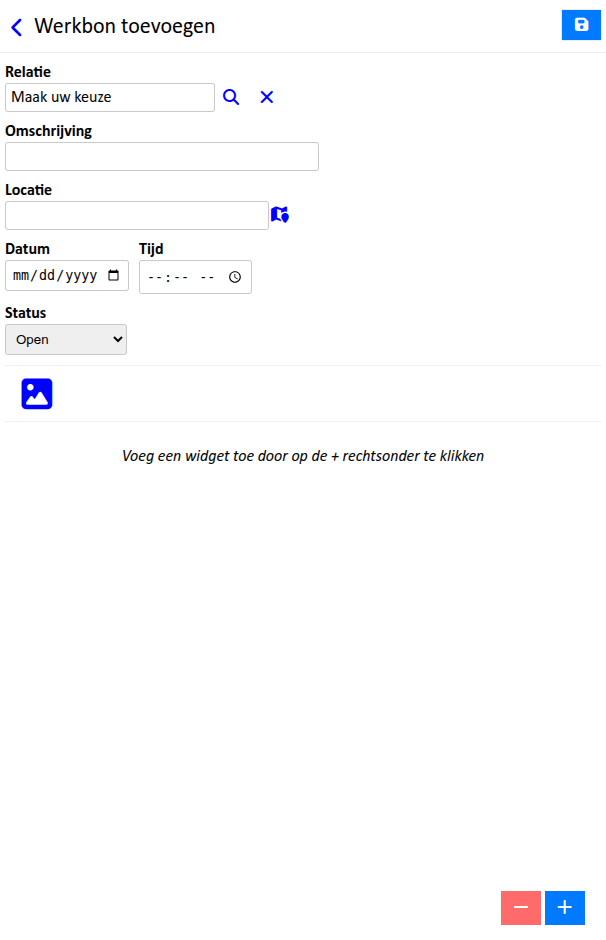 Op mobiel kan je widgets toevoegen door rechtsonder op de blauwe plus (+) te klikken.