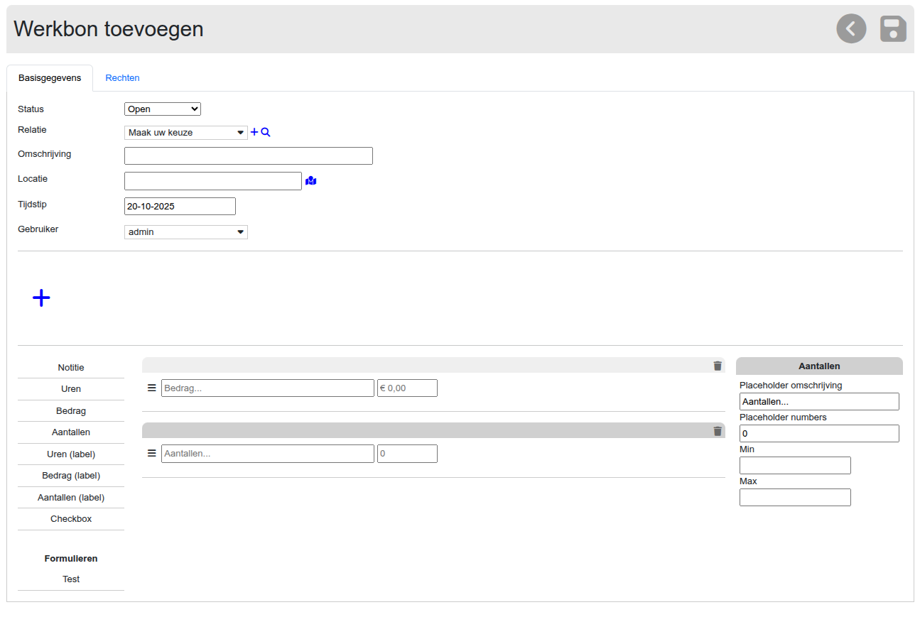 te maken. Bij het aanmaken van een werkbon kunnen dan 1 of meerdere formulieren worden geselecteerd.